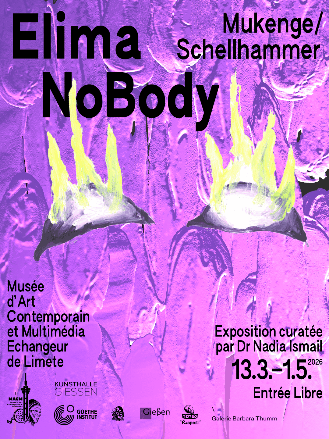Elima – NoBody hat am 13.03.2026 im Museum für zeitgenössische Kunst und Multimedia, Kinshasa eröffnet. Sie ist Teil eines Kooperationsprojektes und wird mit einer weiteren Ausstellung im Sommer 2026 in der Kunsthalle fortgesetzt.